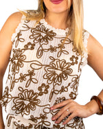 ¡Consigue un conjunto fresco y hermoso con el Set Marisa! Este set incluye una blusa y un short bordados con flores en tonos café, perfecto para lucir a la moda en cualquier ocasión.