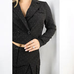 Este conjunto de cropt top blazer con falda es sin duda una elección elegante y exclusiva.