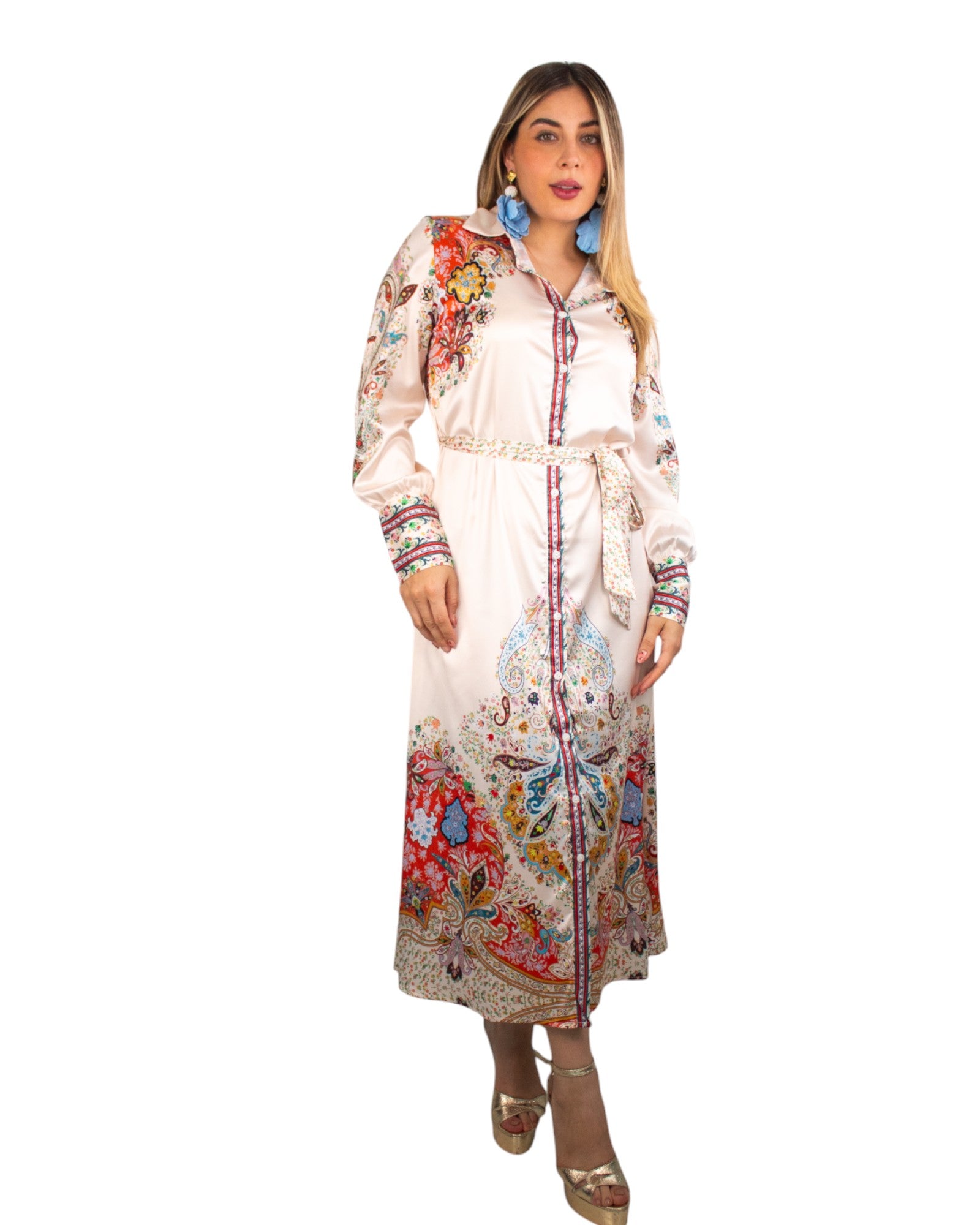 ¡Siente la belleza y comodidad con el Vestido Martina! Este hermoso vestido tipo camisón en tono nude presenta un estampado floral y botones delicados.