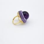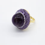 ¡Luce elegante y de moda con nuestro hermoso Anillo Amatista! Hecho con un impresionante gran bolsa de amatista y un contorno morado a juego, este anillo es ajustable para adaptarse a cualquier dedo.