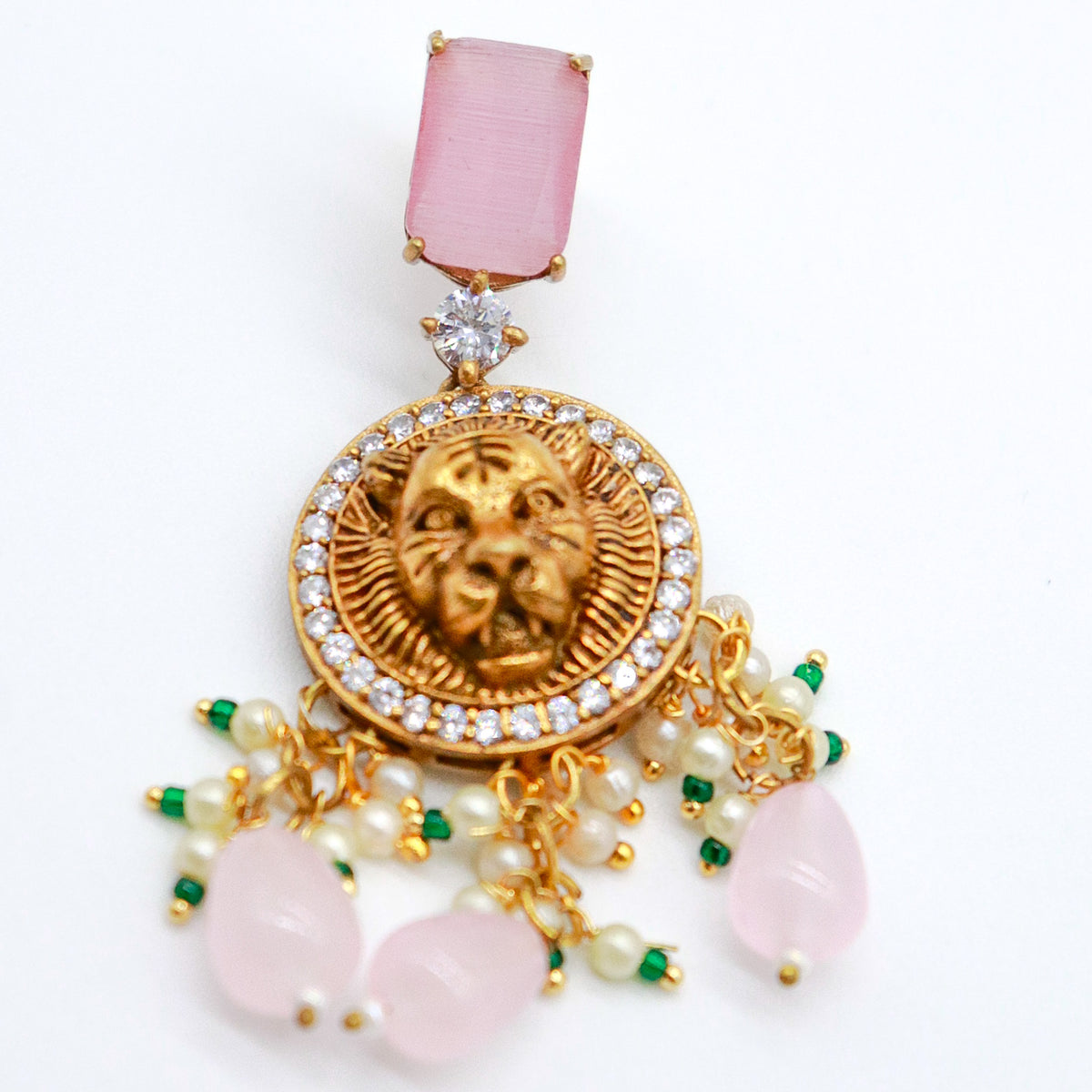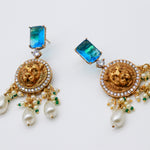 Bellisimos aretes unicos y originales de leon dorado con zirconias brillantes y cuarzo !