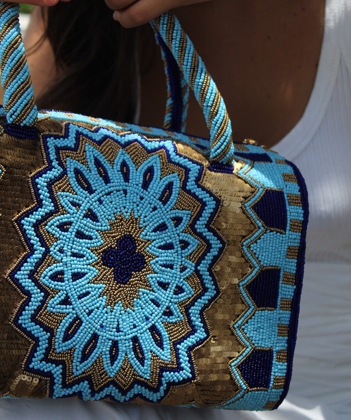 Hermosa y original bolsa hecha a mano por artesanas de la India.