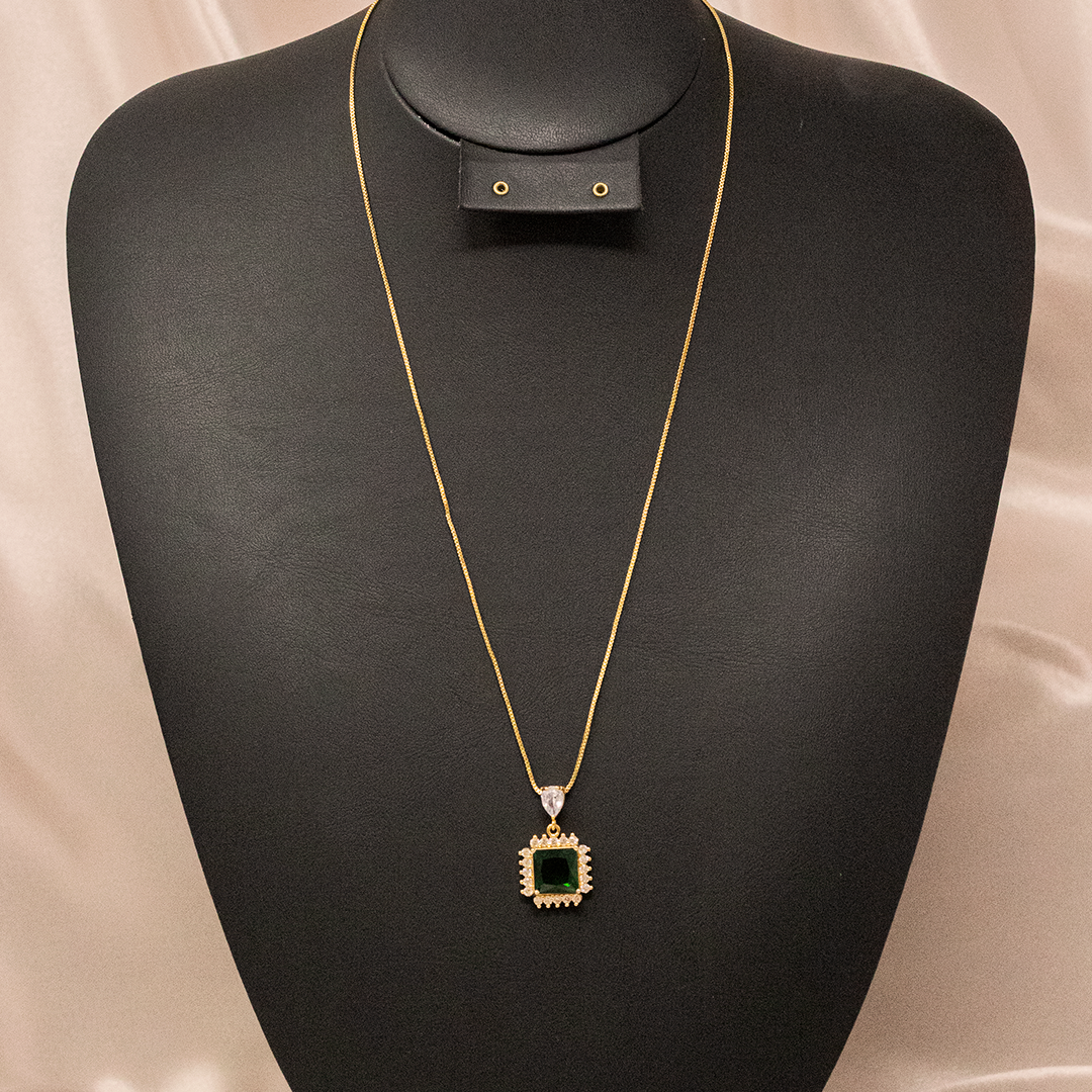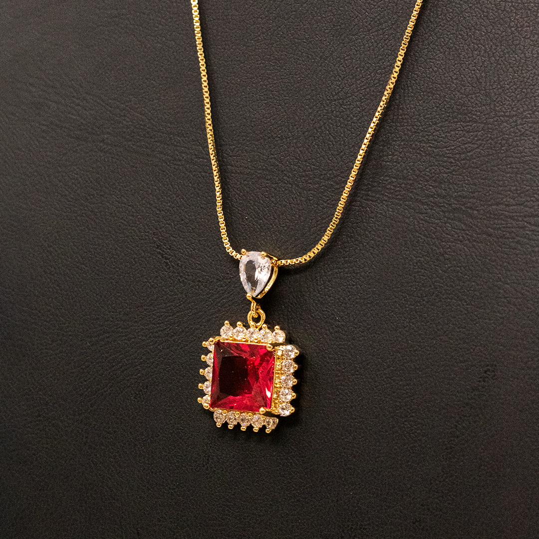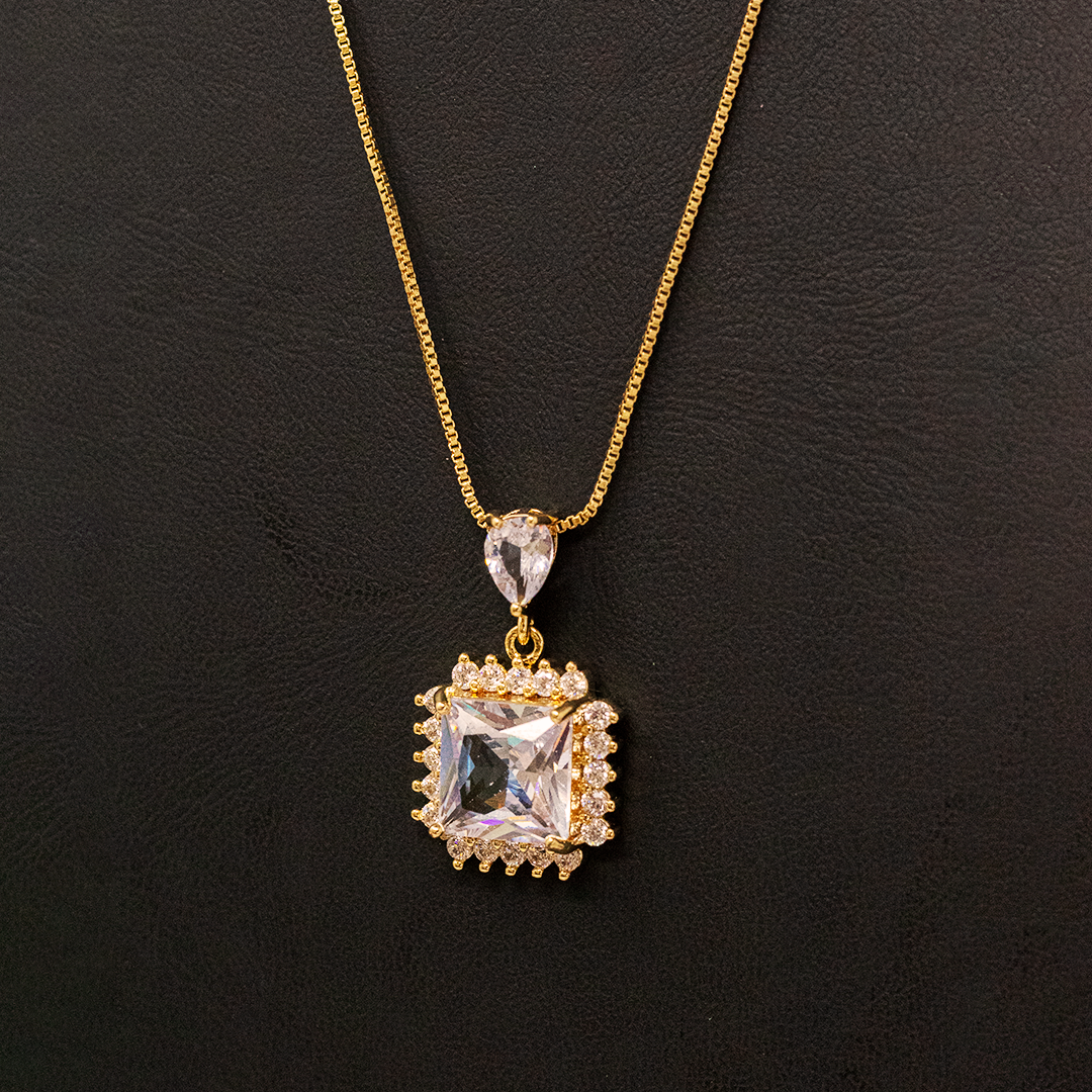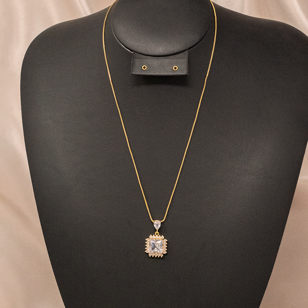 Cadena dorada cuadrado color cristal y gota zirconia