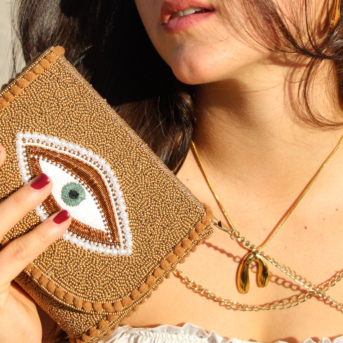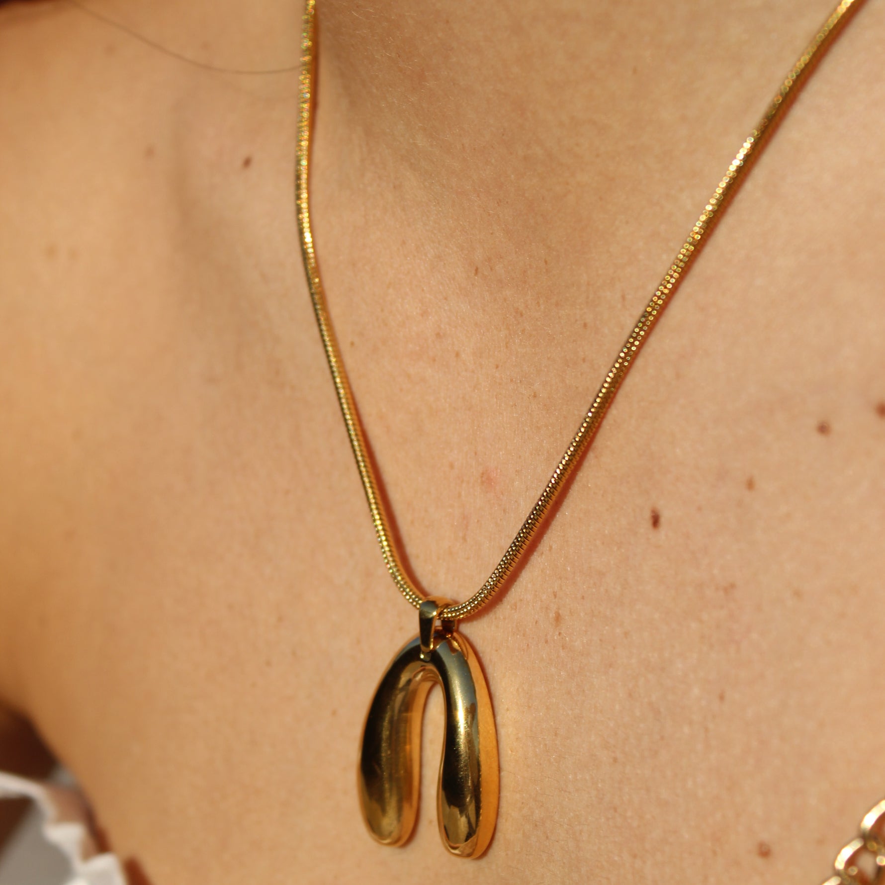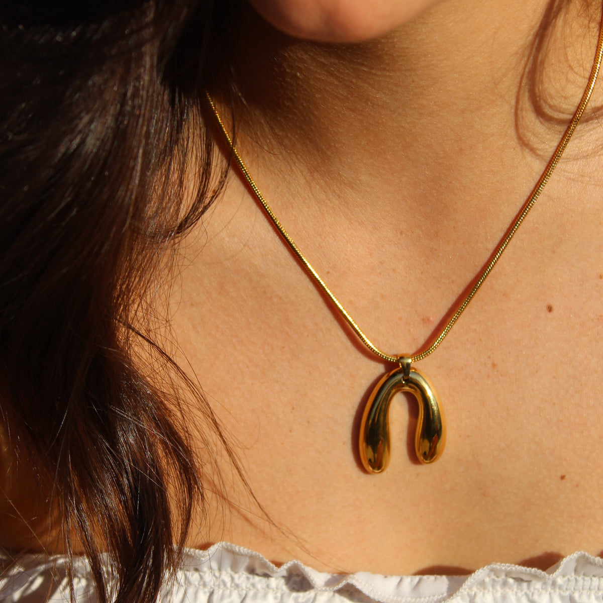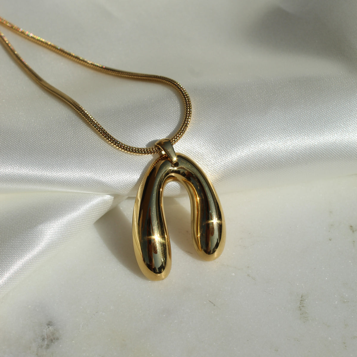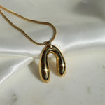 Cadena dorada acero inoxidable con dije U uniforme chunky , modelos muy en tendencia para un look casual
