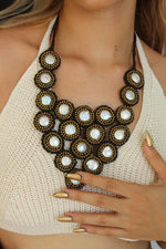 Este collar tejido está hecho con conchas blancas naturales, lo que lo convierte en una pieza única y elegante. Perfecto para añadir un toque de sofisticación a cualquier atuendo.