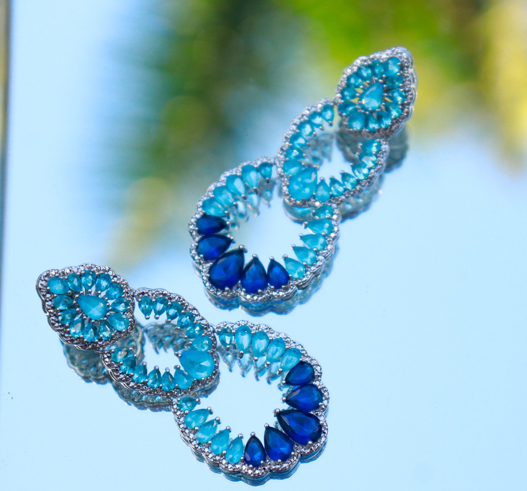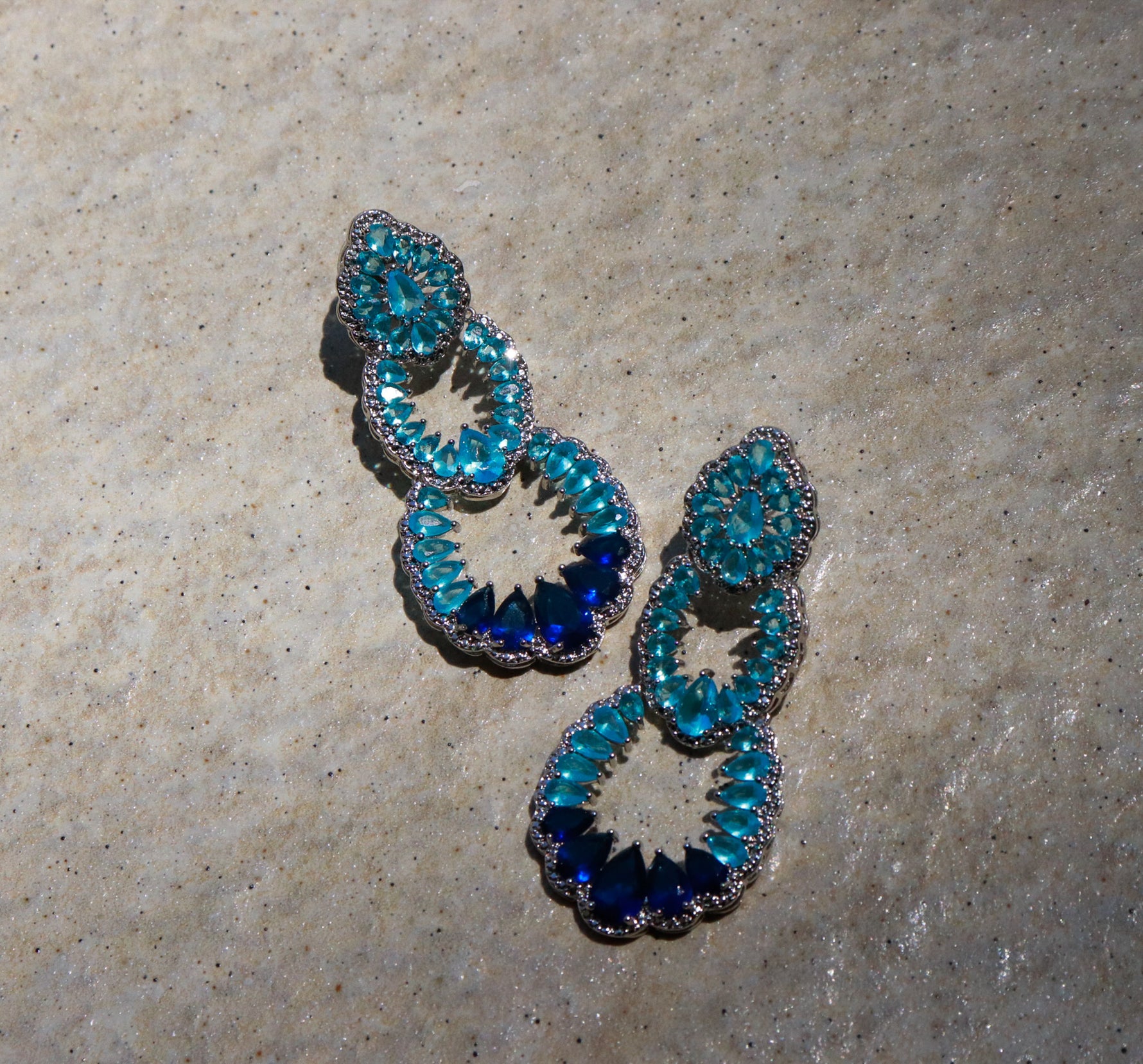 Aretes madre Reyna de zirconias azul cielo y azul rey brillantes