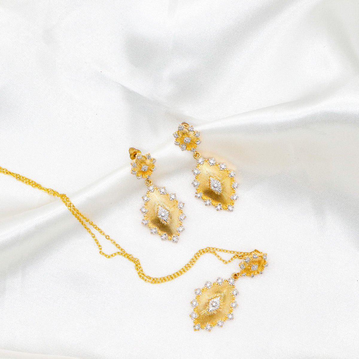 Set luxury plata 9.25 baño de oro 14k y zirconias.