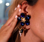 Aretes creados en Maria Santina , flor azul rey con colgante de toro y detalle de piedra natural azul en cabeza.