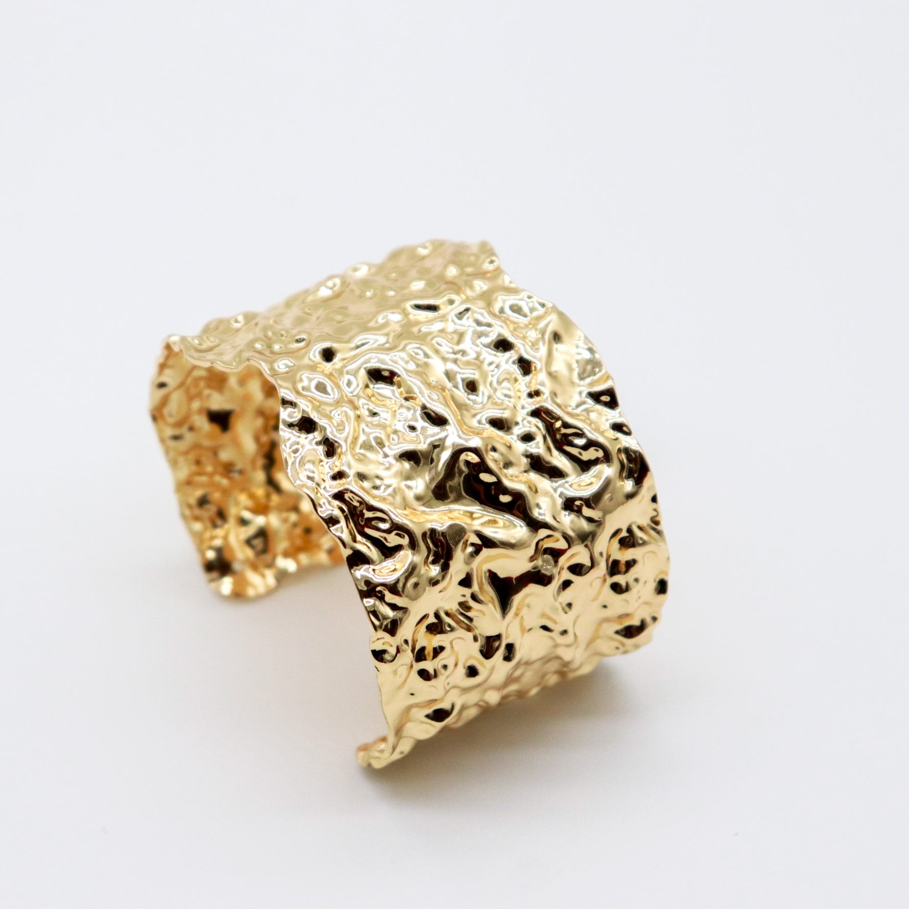 Bellisimo y elegante brazalete dorado con detalles irregulares super en tendencia !