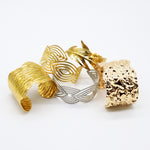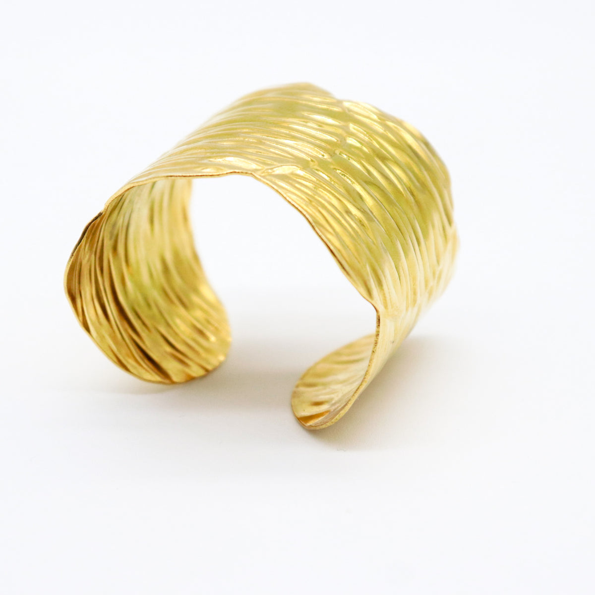 Brazalete ancho con diseño tipo obleas irregular , material acero inoxidable , resistente al agua .