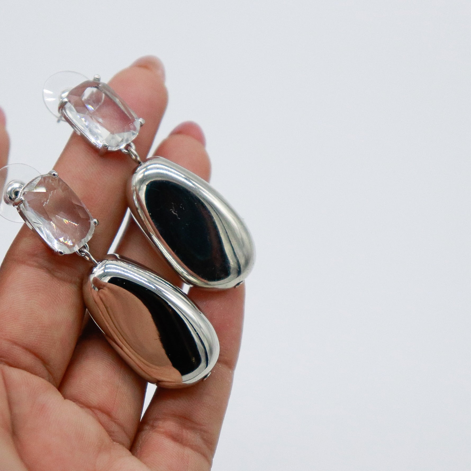 Lindo par de aretes muy versátiles con cristal y colgante plateado !