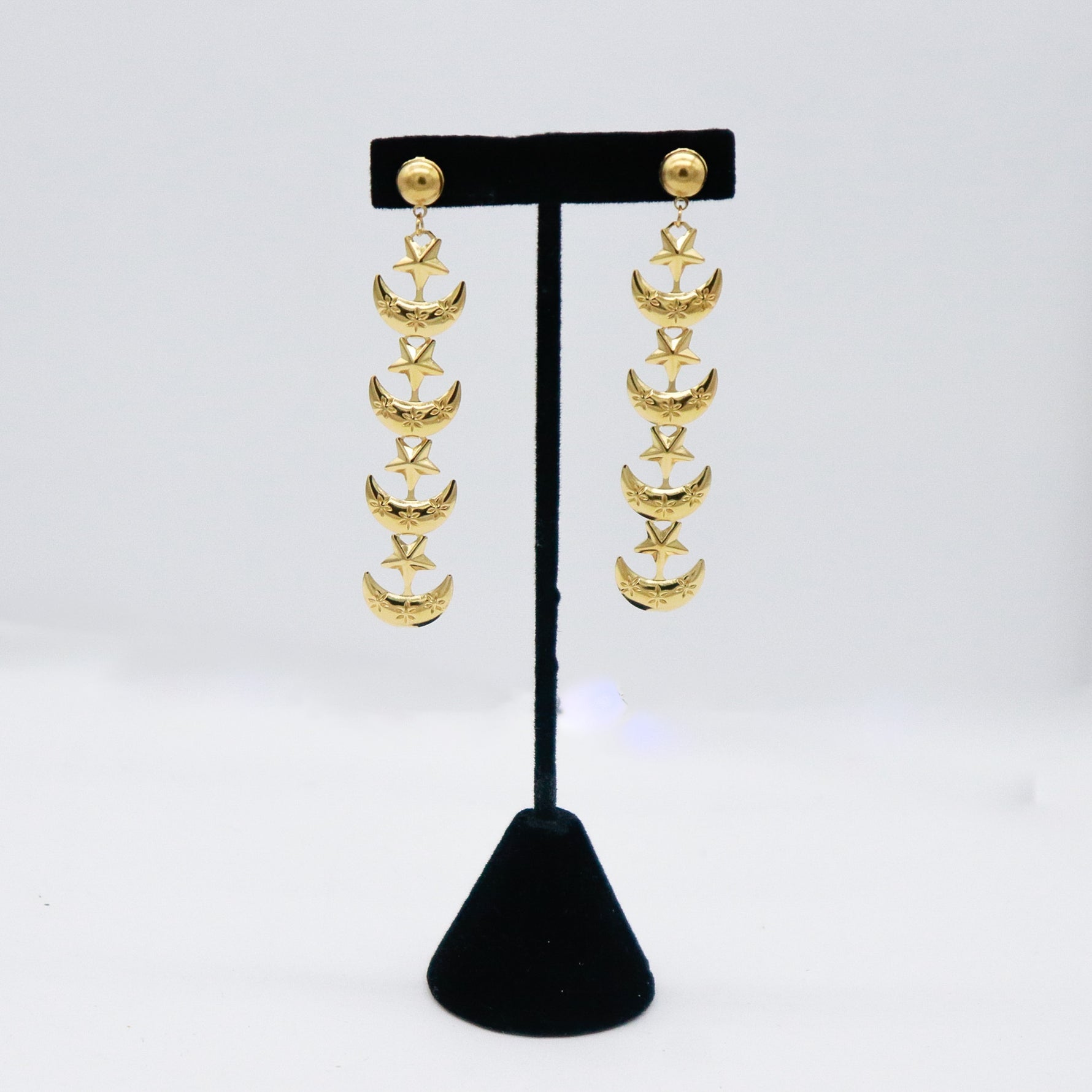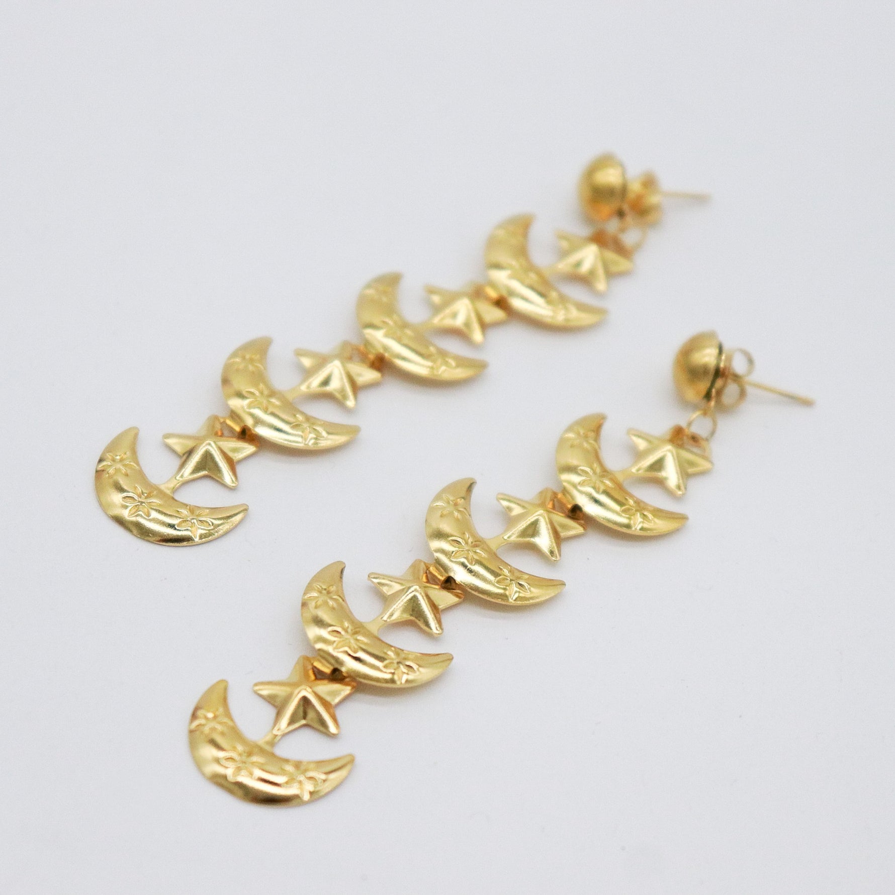 Estrellas y lunas en este bonito diseño de aretes dorados