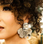 Aretes creados en Maria Santina edición holidays , cristal con caída tipo abanico plateado acero inoxidable.