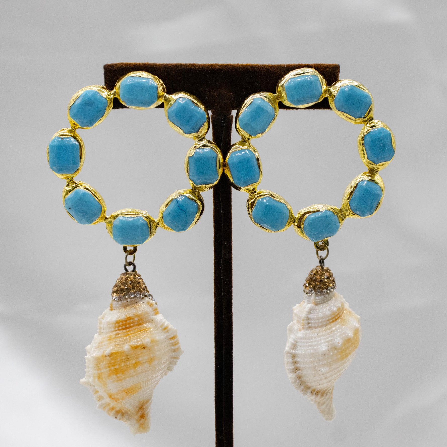 Aretes MARIA SANTINA colección verano de aro de turquesa con colgante de caracol natural