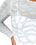 Blusa Blake: elegancia con un toque de brillo. Esta prenda mesh de manga larga combina comodidad y estilo con detalles brillantes que capturan la luz en cada movimiento. Perfecta para noches especiales o cuando quieras sentirte radiante, disponible en blanco clásico o negro sofisticado.