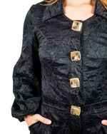 El Jumpsuit Isabella es la expresión de elegancia contemporánea. Confeccionado en encaje refinado con detalles de botones dorados, este pantalón de manga larga en negro proyecta una presencia distinguida.