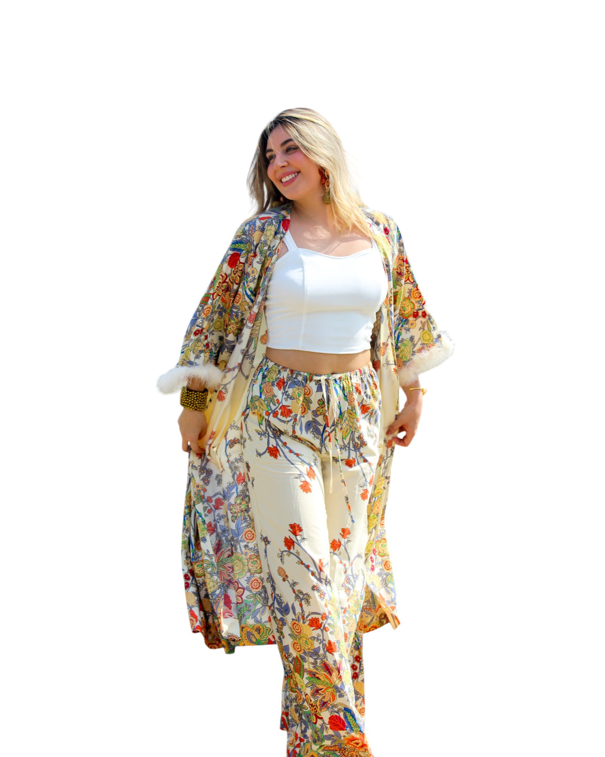 ¡Realza tu estilo con nuestro hermoso pantalón Rosalía! Disfruta de su suave textura y diseño floral en tonos vibrantes como rojo, azul y amarillo.