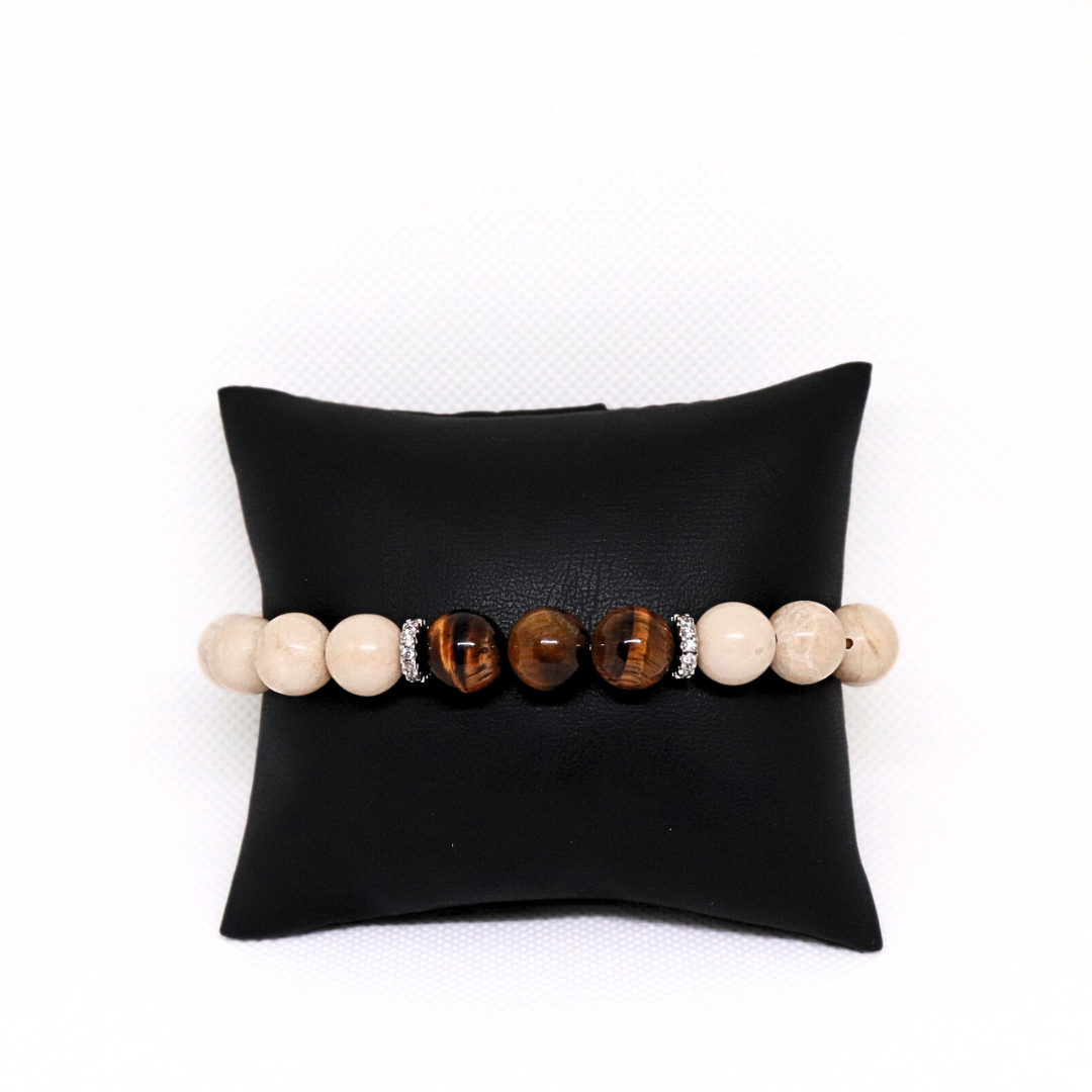 Pulsera para caballero de piedras naturales ojo de tigre y labradorita Pulsera de relajación. beige/café |