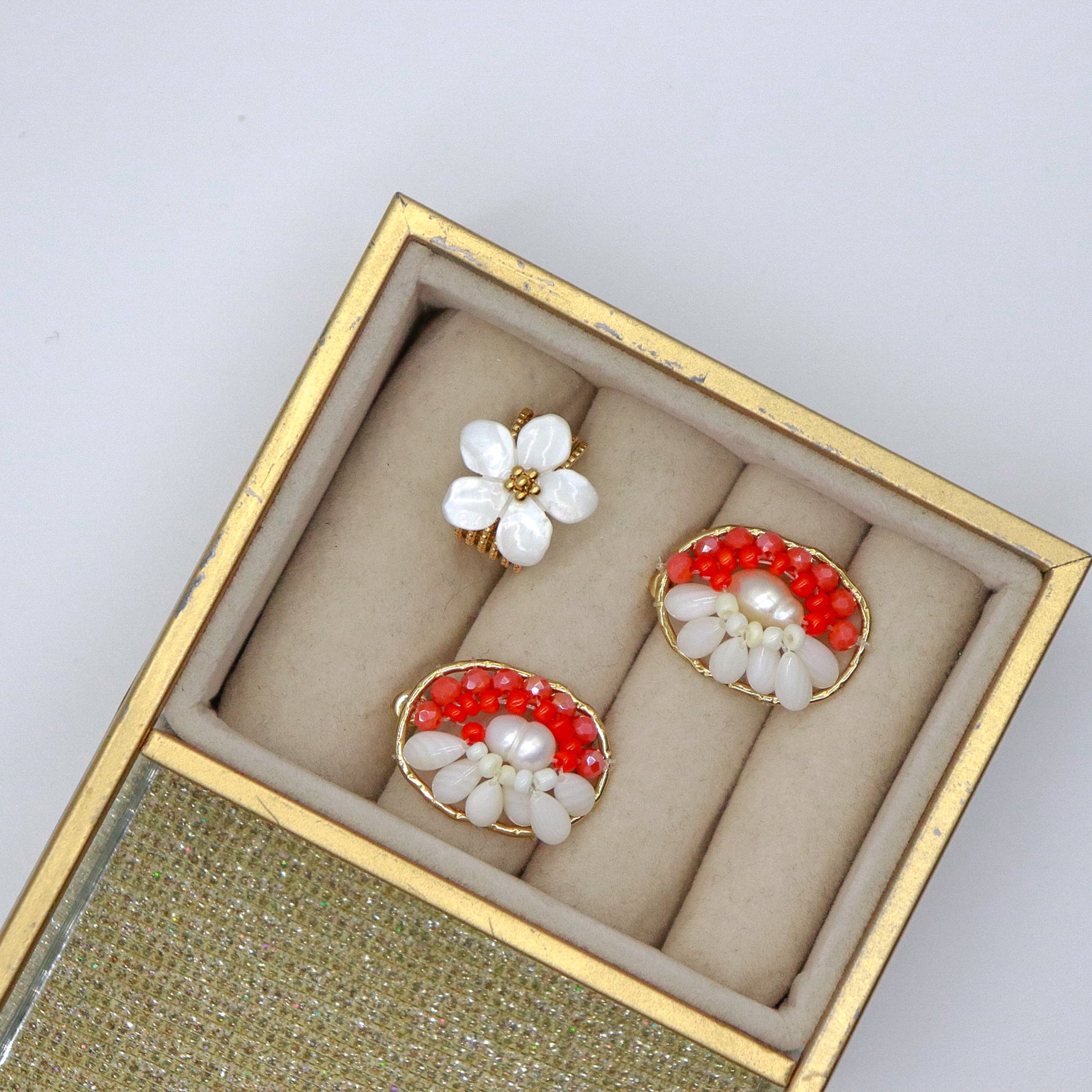 Luce radiante con estos aretes handmade que combinan elegancia y diversión. Diseño ovalado adornado con una perla natural tejida y cristales rojos brillantes que capturan la luz con cada movimiento. Confeccionados en acero inoxidable resistente, son perfectos para quienes buscan joyería sofisticada sin comprometer la durabilidad.