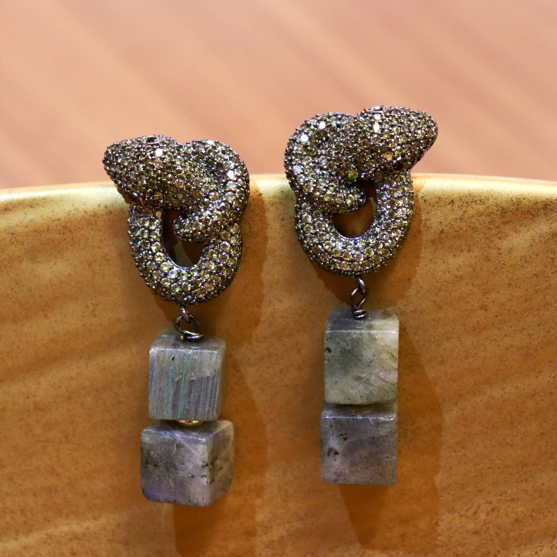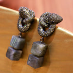 Aretes colección turca de serpientes muy brillantes y colgantes cuadrados de piedra natural.