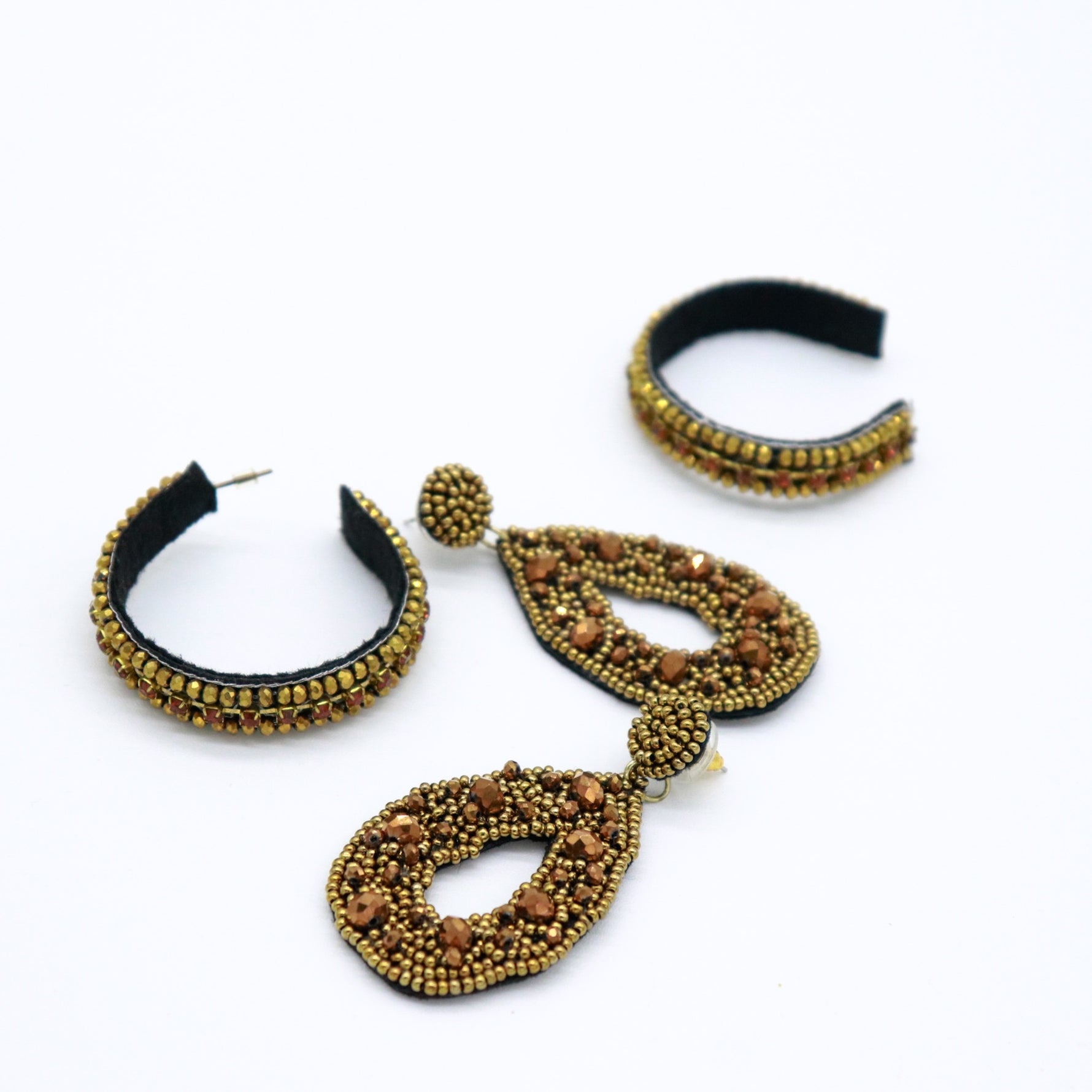 Descubre la belleza artesanal de las Arracadas Carlotta, hechas a mano con cristales color bronce. Cada par es único y sofisticado, con un toque de brillo que te hará destacar en cualquier ocasión.