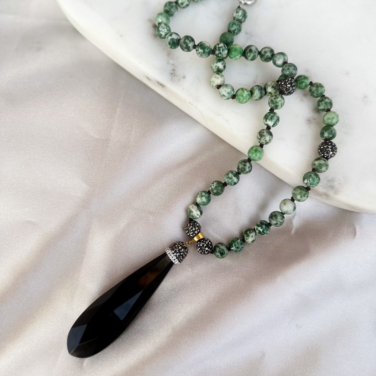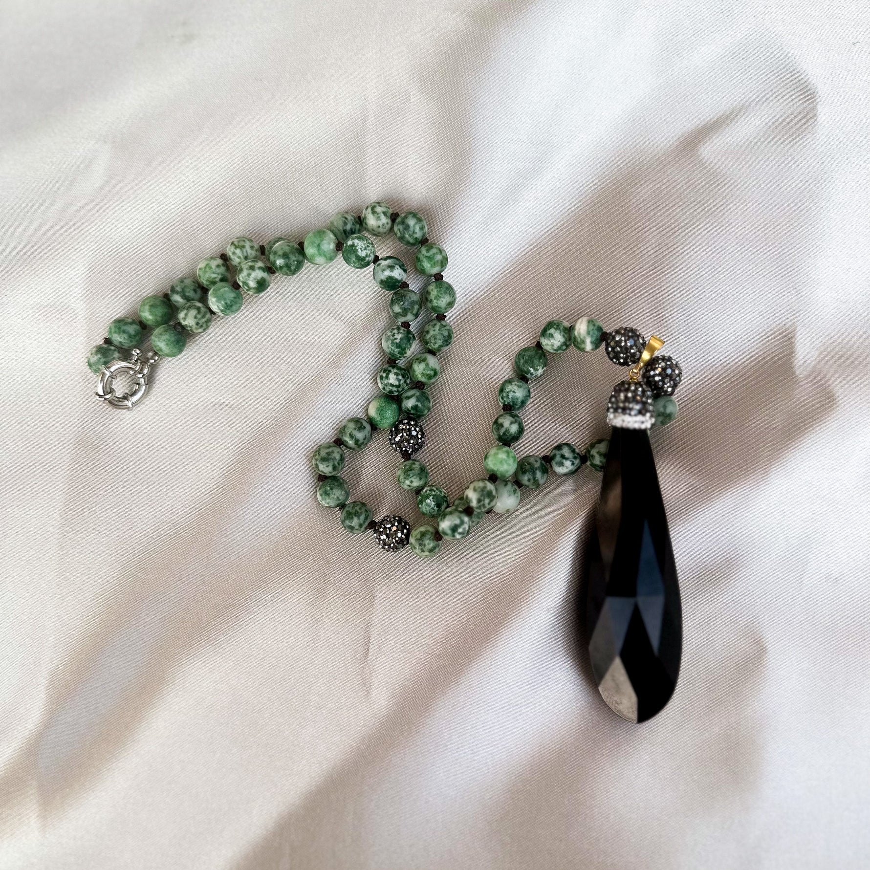 ¡Luce única con nuestra hermosa collar de piedra natural con dije de gota de cristal negro onix!